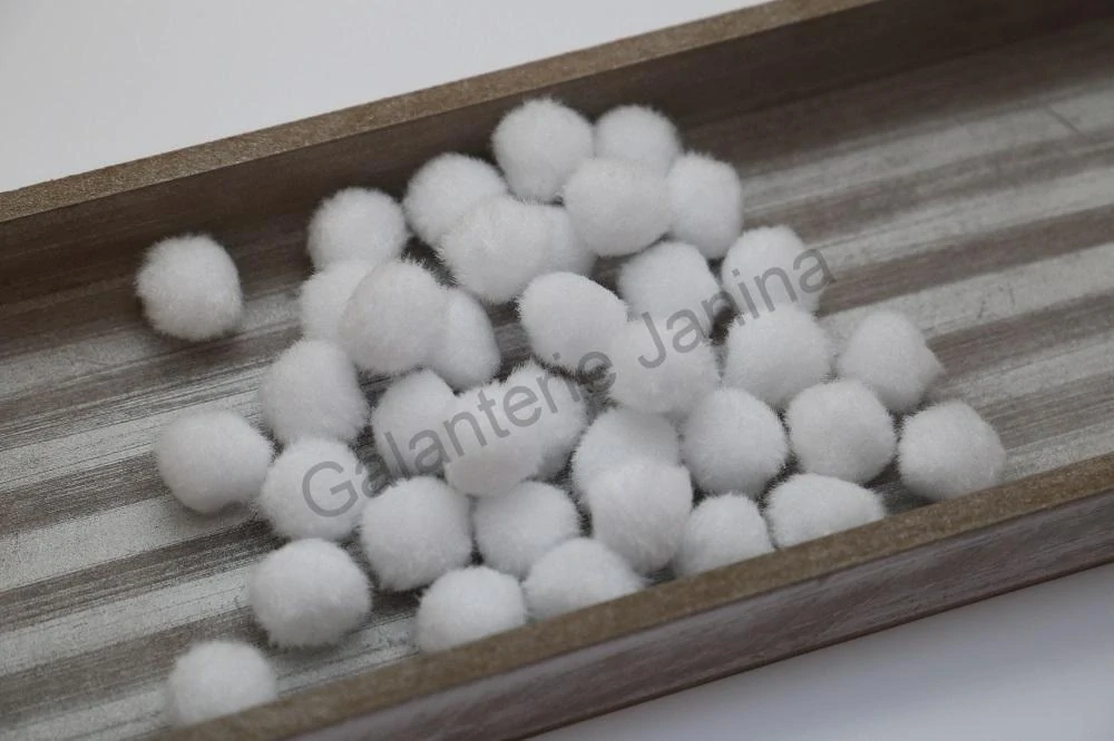 Měkké bílé bambulky jsou určeny především pro Vaše kreativní tvoření. Dají se z nich vyrobit různé hračky, zvířátka, postavičky, všemožné dekorace, můžete s nimi dozdobit tašky, kabelky, ale i čepice, svetříky či šály. Vytvoříte z nich krásné závěsy na klíče či mobil. Velmi často se používají v kombinaci s jinými materiály, drátky, můžete na ně nalepit očička a podobně.