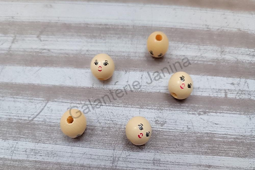 Dřevěné korálky s obličejem 14 mm přírodní lakovanéSkladem 47 ks3 Kč/ ks