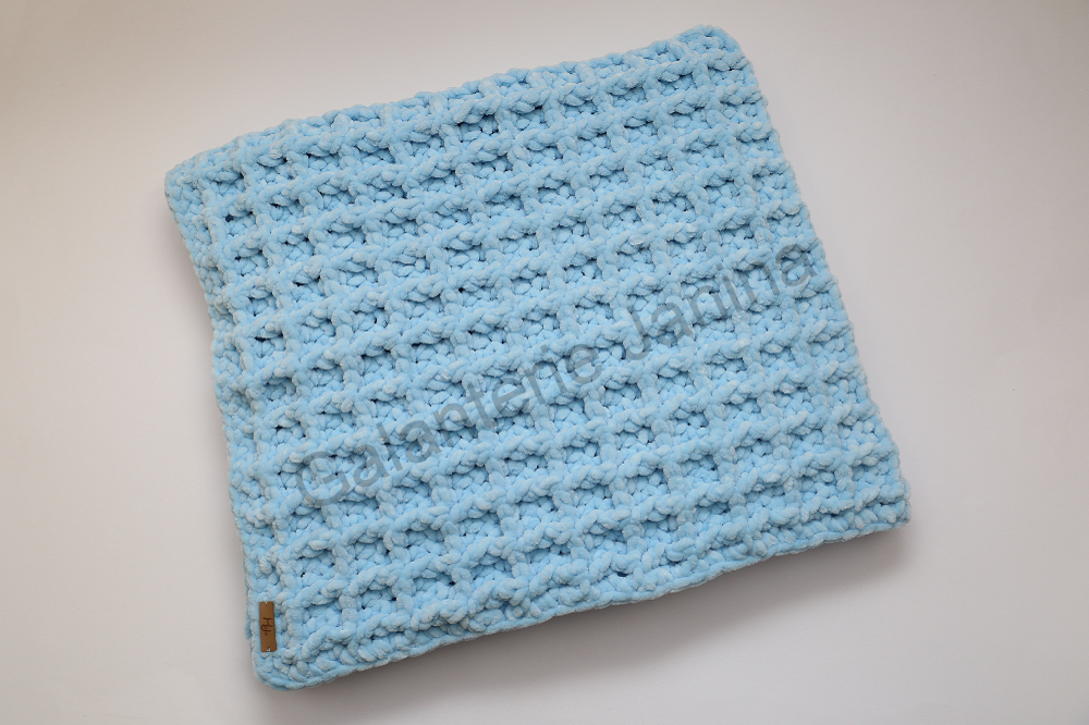 Ručně háčkovaná deka pro miminko z žinylkové příze, která je krásně jemná, hebká a hřejivá. Využijete ji do kočárku, do postýlky nebo na cestách jako přikrývku v autosedačce.