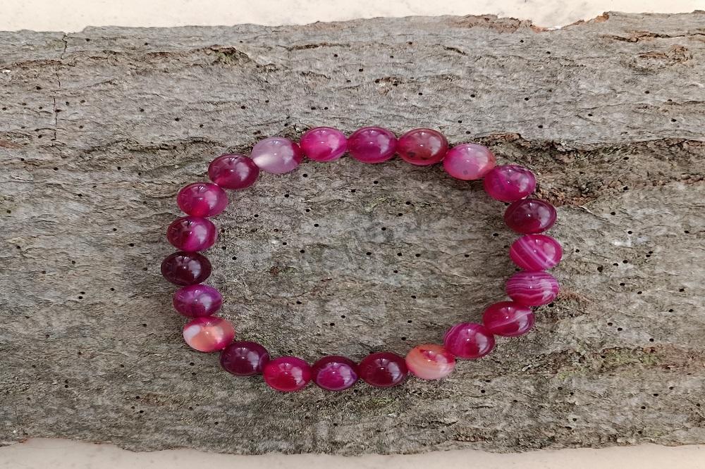 - Náramek achát tmavě růžový pruhovaný 8 mm