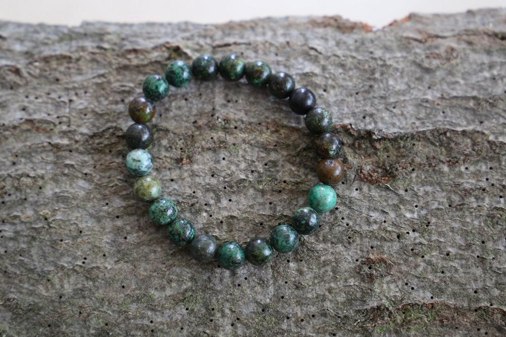 Náramek je z korálků afrického tyrkysu. Je navlékán na dvojitou lycru - je tedy pružný a skvěle se přizpůsobí Vaší ruce.