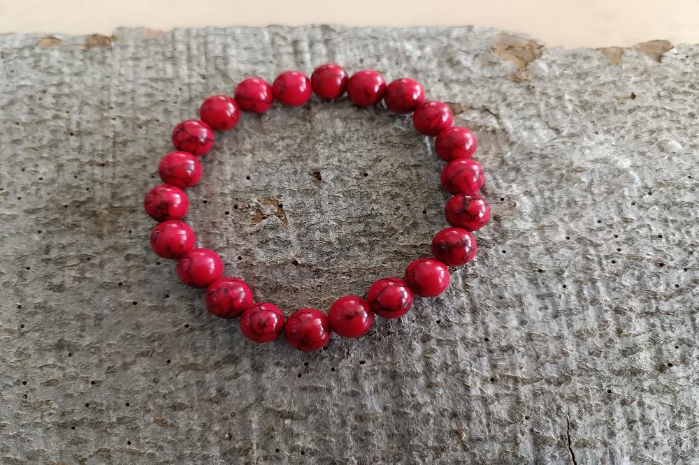 Náramek tyrkys syntetický červený 8 mm