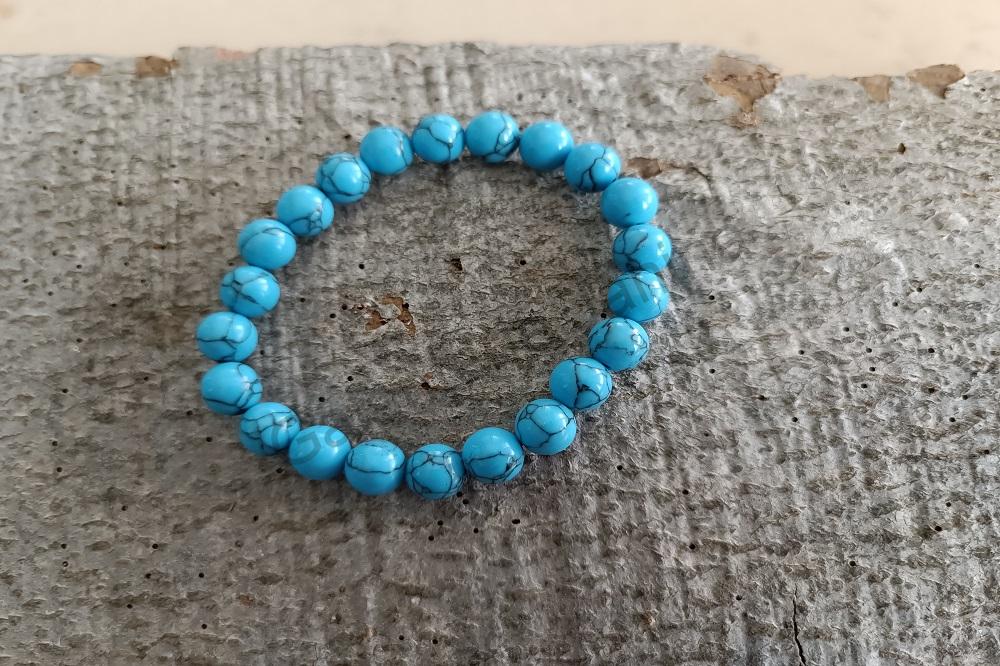 Náramek tyrkys syntetický modrý 8 mmSkladem 1 ks40 Kč/ ks
