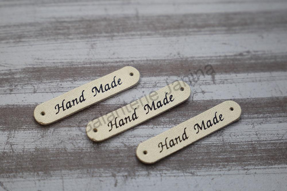 Nášivka handmade slouží jako originální štítek na Vaše ručně dělané výrobky, můžete ji buď našít na svůj výrobek nebo dvěma otvory provléci šňůrku a na výrobek ji zavěsit.
