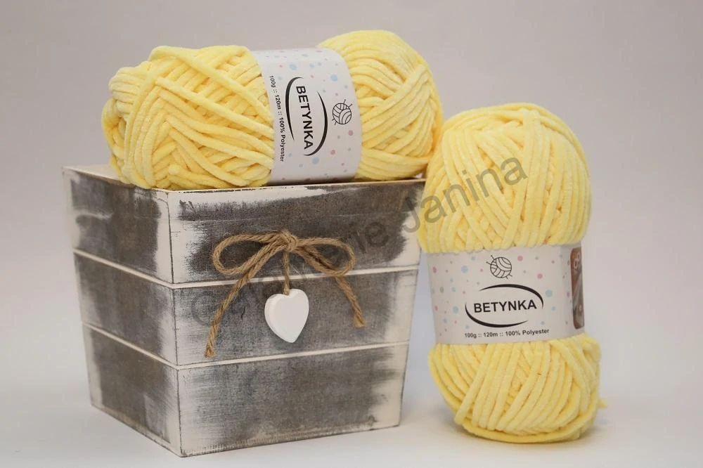 Žinylková příze Betynka žlutá je neuvěřitelně hebká, nadýchaná a sametová na dotek. Tato oblíbená příze je ideální volbou pro pletení a háčkování pro nejmenší. Vytvoříte z ní deky do kočárků, měkoučké přikrývky, čepičky, nákrčníky i hřejivé svetříky. Betynka je také vhodná na háčkované hračky, které si děti okamžitě zamilují.