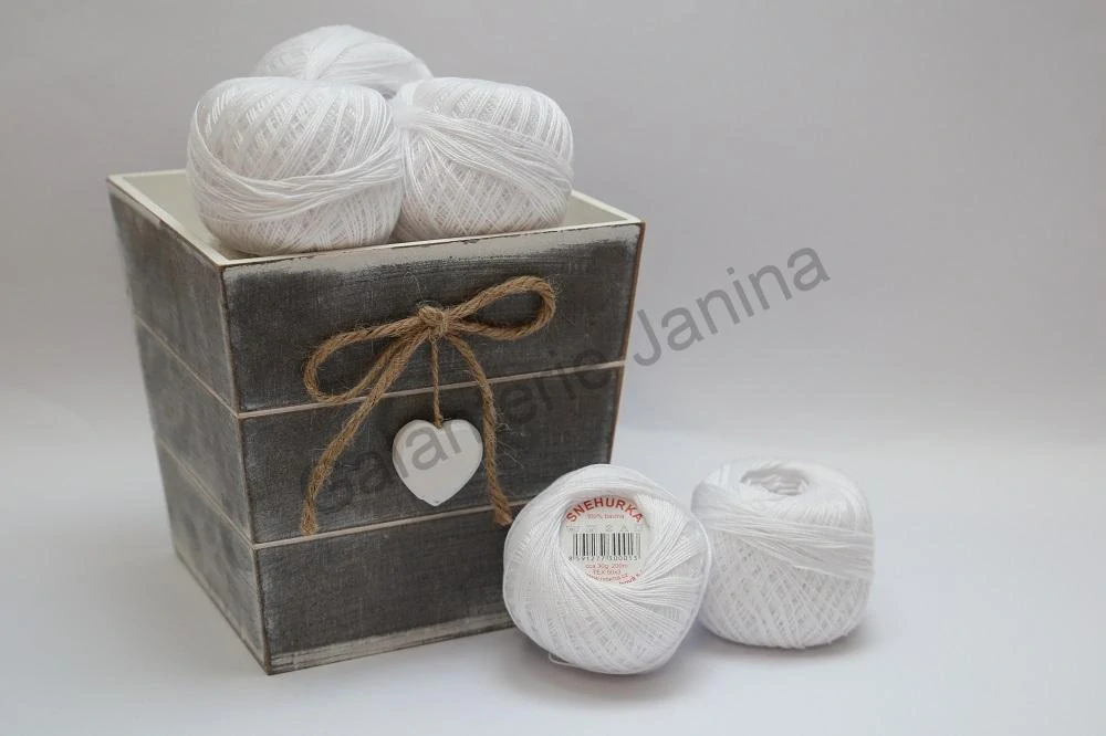 Příze Sněhurka je příjemná bavlněná příze určená pro ruční i strojové pletení, háčkování, paličkování. Tato příze má široké využití. Vytvoříte z ní tenká letní tílka, šaty, sukně, šátky, všemožné bytové dekorace. Výrobky z této příze skvěle drží tvar. Lze prát až na 60°.