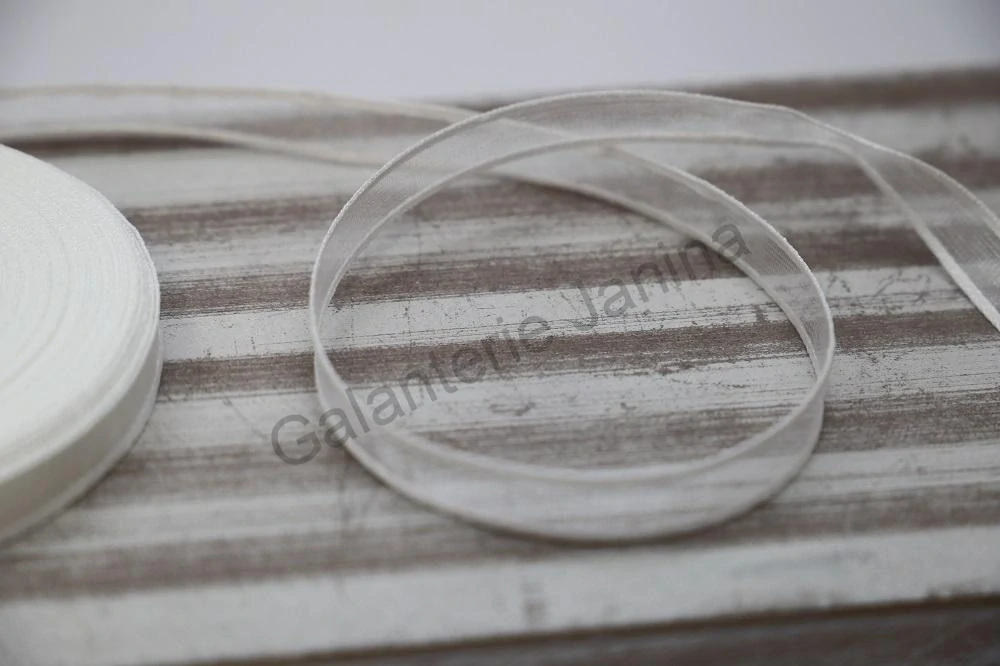 Monofilová stuha v šíří 10 mm má atlasové kraje jako zdobící prvek a vlasec na okraji.