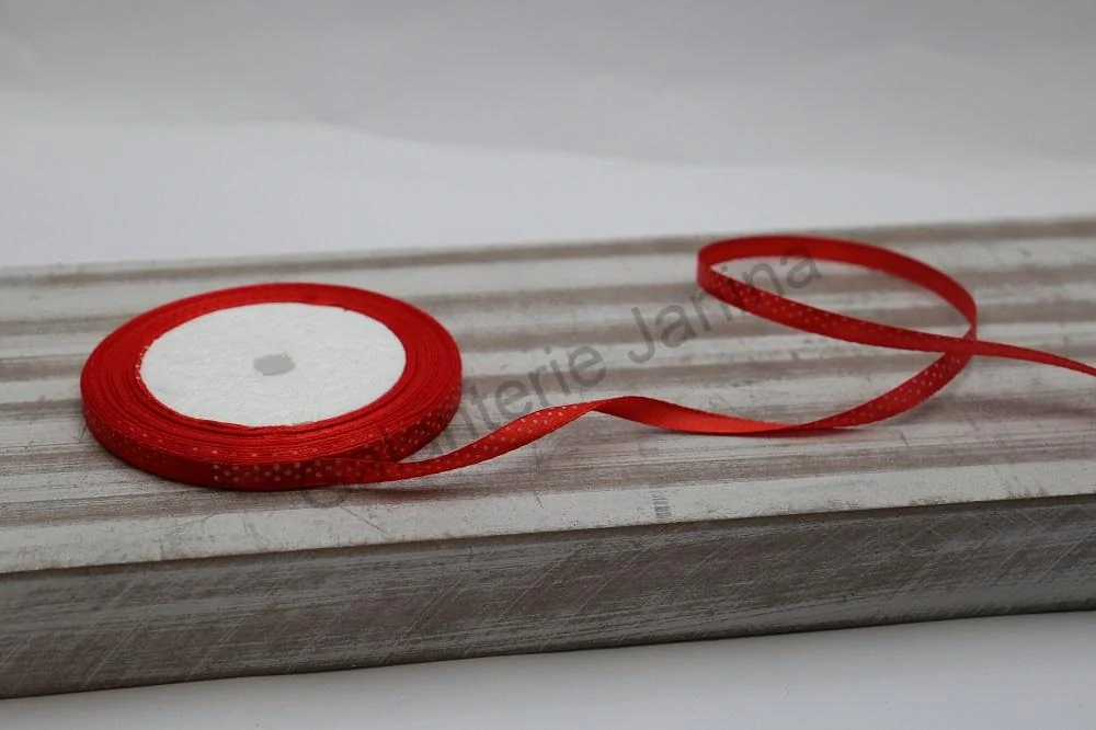Stuha saténová 6 mm červená - bílý puntíkSkladem 21 m4 Kč/ m