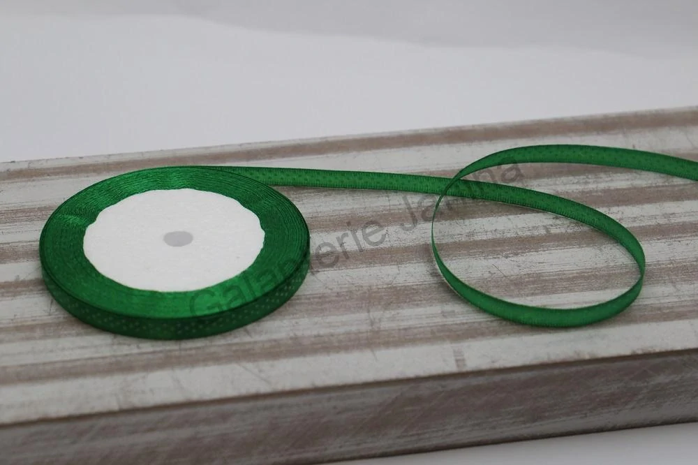 Stuha saténová 6 mm zelená - bílý puntíkSkladem 22 m4 Kč/ m